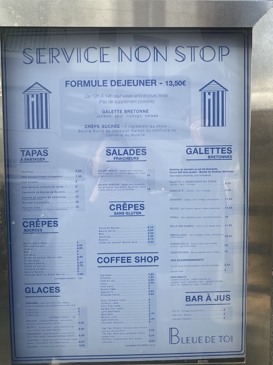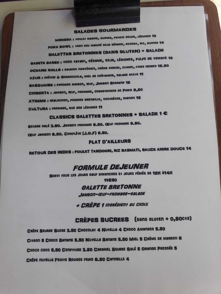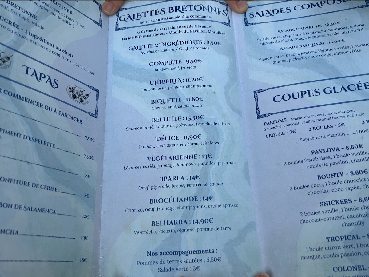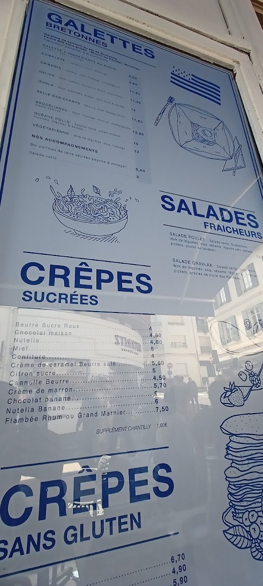 From a reviewer’s perspective, the menu at Crêperie Bleue De Toi offers a well-balanced selection that highlights both sweet and savory specialties, making it easy to appreciate the restaurant’s focus on fresh, regional ingredients and classic crêperie craftsmanship. The Crêpe Sucrée stands out as a simple yet satisfying dessert option, while the Océane Rôles brings a seafood-inspired touch that reflects the coastal character of Biarritz. For those looking for something more traditional and hearty, the Assiette de Jambon Et Brebis de Pays showcases local flavors with quality ham and sheep’s milk cheese, adding a distinctly regional feel to the menu. Meanwhile, the Crepe Huevo Y Jamon offers a comforting combination of egg and ham wrapped in a perfectly prepared crêpe, making it a reliable savory choice. Overall, the menu feels thoughtfully curated, with dishes that are both authentic and approachable, leaving a lasting impression through quality ingredients and careful preparation.